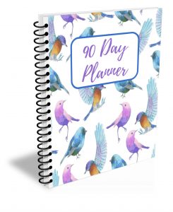 Printable 90 day undated daily planner with a cheerful tropical birds cover can be started any day of the year.